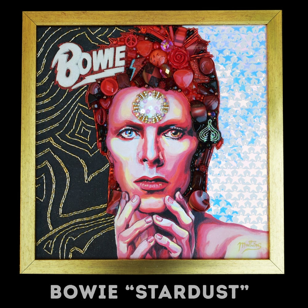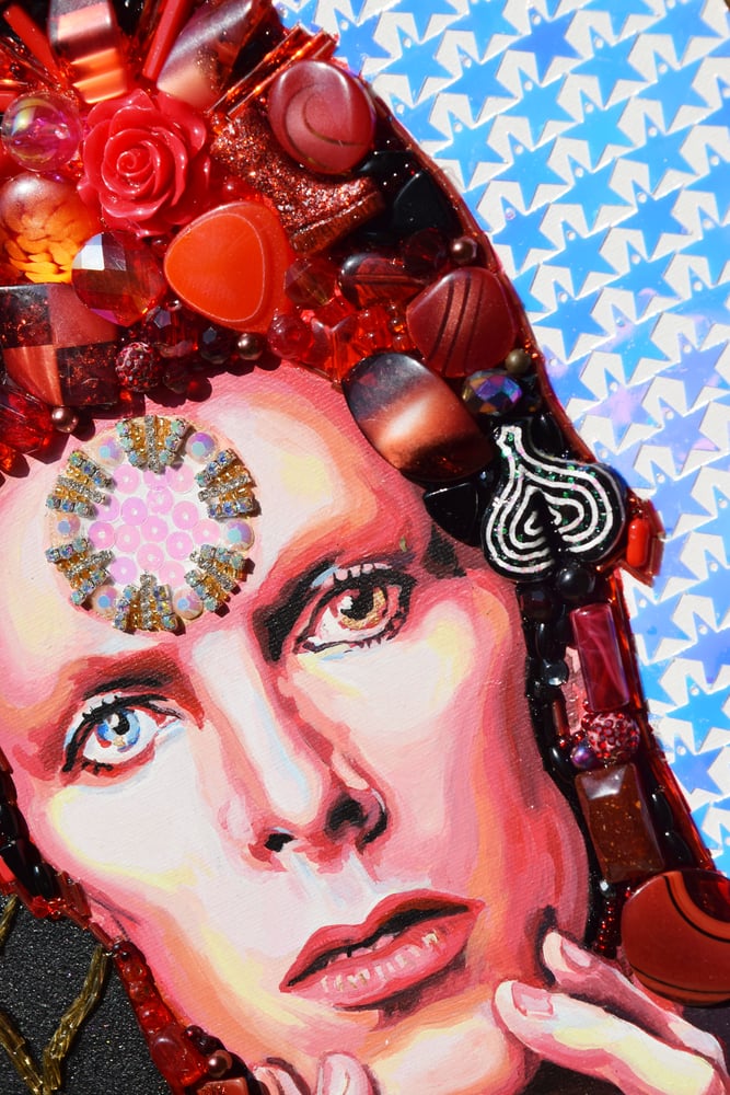 It's a combination of a Bowie's clothes pattern with stars + the celebration of his iconic look.