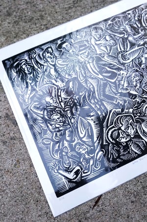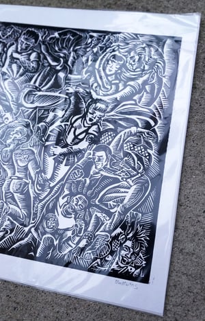 This work represents moshpit where all the styles of related to punk subcultures are tigether.